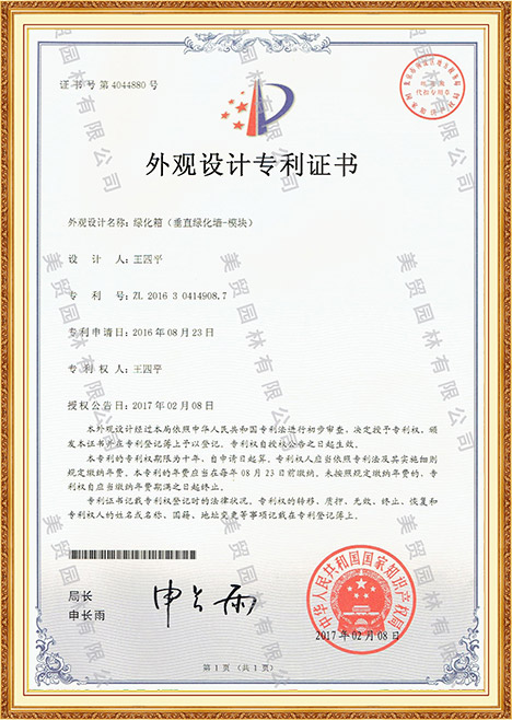 mile米乐home有限公司荣获多项专利及证书,包括外观设计,园林设计,产品设计等,产品经过国家质监局检测合格发放质检合格证书。